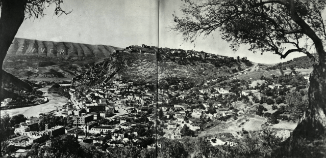 A panorama of Berat with the ENVER geoglyph later added to the photograph.