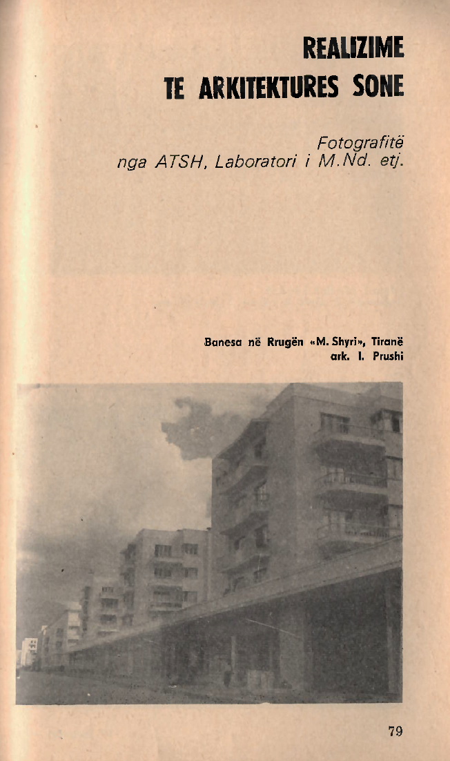 The second scan today is the following number of Nëndori, which contains the reports on the discussion of the first annual national meeting of architects, which took place on May 6, 1971. This selection of texts includes the main address given by Sokrat Mosko, a member of the directorial committee of the Union of Writers and Artists, as well as shorter speeches given by architects, artists, critics, and writers, including Fadil Paçrami, Kristaq Rama, Enver Faja, Valentina Pistoli, Petraq Kolevica, and Foto Stamo. Just as interesting as these discussions–which give a vital snapshot of the state of architectual and urbanist discourses in Albania at the outset of the 70s decade–is a portfolio of photographs that follow the reports. This selection of photos documents a plethora of socialist modern (and modernist) buildings constructed in Albania in the first decades of the communist period. These range from factories to apartment buildings to hotels, from bridges to a lapidar.