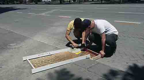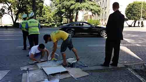 RI: You’ve created several works in close proximity to official state buildings located along the boulevard of the Martyrs of the Nation; have you encountered any problems from security guards or from the police during the creation of these works? Have the police ever monitored you afterwards?