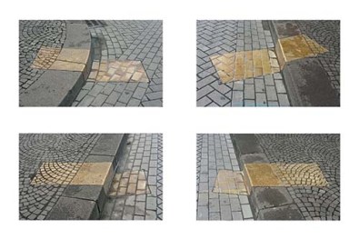 PXh: Justice and art do not have any direct connection, but justice can be the subject of the work of art. Negative I-II-III-IV is a work that has justice precisely as its subject matter [7]. The work is about the protests of January 21, an event that is not very distant in collective memory, and which left behind four dead on the Boulevard of the Martyrs of the Nation. On January 21, 2011, Edi Rama, the leader of what was then the opposition party in Albania [the Socialist Party], led hundreds of protestors in a protest against the government headed by Sali Berisha. This protest developed as a response to a video scandal made public in the media, involving Ilir Meta, Foreign Minister and leader of the Party for Socialist Integration, which was at that time in a coalition with Berisha’s [Democratic Party] government. In the video, Meta was caught on tape wrapping up a corrupt business deal. On the day of the protest, four citizens were shot to death by soldiers of the republican Guard, shooting from the windows of the Prime Minster’s building. During the elections in 2013, something surprising happened: two political opponents, Edi Rama and Ilir Meta, entered into a coalition and won the election. Rama became the Prime Minister and Meta became the Head of Parliament, which gave him immunity to prosecution by courts. The only sign that today remains from the shootings of January 21 are four bronze plaques that are embedded in the sidewalks of the boulevard, right along the edge of the sidewalks in the exact places where the four protestors were shot.