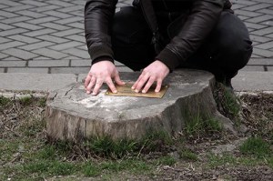 When I decided to create Monument to Failure [5]—which commemorates the judgment regarding the Gërdec case, where 26 people were killed—I thought of the work as a gift, as a missing monument for the city of Tirana [6]. During the process of the monument’s creation, I was trying to make a prediction; I was convinced that the bronze plaque wouldn’t stay on the tree stump very long, since bronze is a valuable material and it would probably get stolen. For a secondary documentation of the work, I decided to stick the plaque to the stump with glue. Everything went far beyond what I had predicted, however. A few weeks later, the mayor of Tirana [Erion Veliaj] pulled up the monument personally, along with the whole remaining tree stump, completely destroying the monument. In its place, he planted a new seedling tree. This action is clear evidence of the relationship that the current political regime creates with history, and the modifications of public space that the regime carries out in the name of political aestheticization.