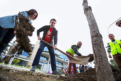 Tirana Mayor Erion Veliaj planting a tree at the site where Monument to Failure was installed. Photo from the Facebook page of Erion Veliaj, January 28, 2016.
