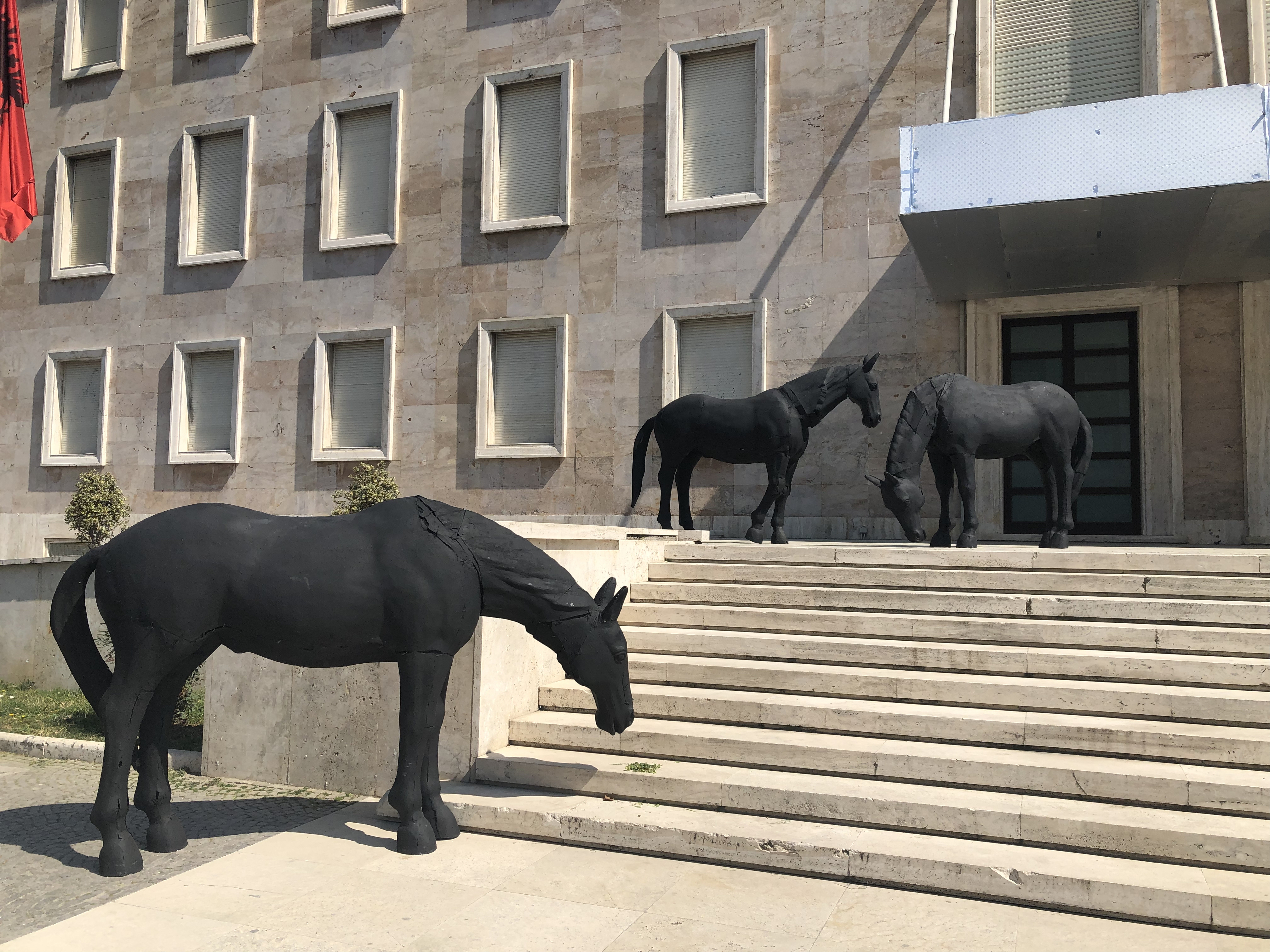 The visions of the social that The Revolution… and Leviathan present are certainly not the only ones that have been presented by artists working (and curators making exhibitions) in Tirana in recent years, but I nonetheless think it is important to map the way these two exhibitions present the relationship the plurality of human being, imagination, and art. I should stress again that this effort to find a parallel between the two exhibitions is my own conceit: there is (as far as I know) no intention for such an affinity to exist. What strikes me most about both exhibitions is that their positions on the question of imagination tell a decidedly grim story about the possibilities of the artistic imagination in Albania today: Leviathan wants to dismiss that imagination in the face of political realities (implying all along that one feels that political reality to be moving towards a better world). The Revolution… uses that imagination to outline a series of ambivalent responses to urban life, engaging with memory, uncertainty, absence, and the fragmentation of a shared sense of social existence. The urgent questions seems to me to be: how can we credibly reclaim a role for the artistic imagination that is critically engaged with existing conditions, and at the same time that shows a way beyond those conditions without falling into a kind of naïve optimism about the future (the same kind of naïve optimism that is regularly used to suggest that we, like the horses, should calmly continue our grazing)?