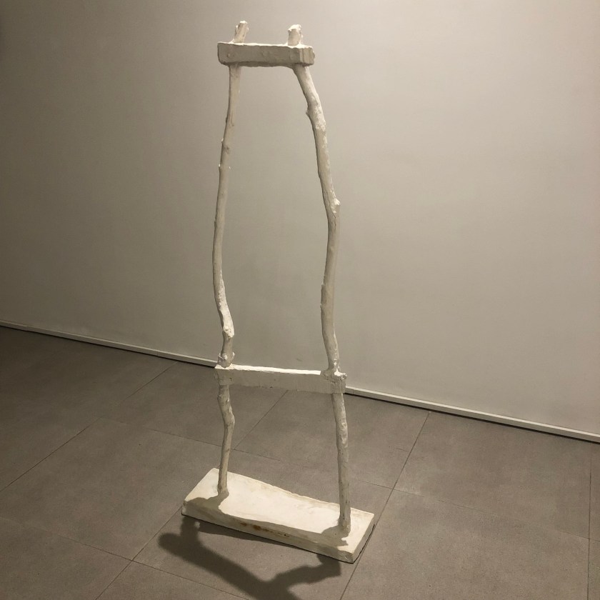 Elsewhere, Alketa Ramaj’s Rriteset: Rritesja 1 (carrying structures) presents a plaster cast (part of a series) of a structure used to ensure that recently planted trees grow straight and remain upright. Without the trees, the artist describes these structures “turn[ing] into ‘worthless bodies’”[6]—they become vestigial organs that no longer have a specific role to play. Like the dictator’s villa in Lamaj’s The Goldfinch, the object of Ramaj’s act of artistic intervention is an object that gestures most directly at a moment past: it looks at what is left behind after the event of urban transformation, and lingers on the semiotic confusion that emerges in the wake of that transformation, turning the object of forward (and upward) mobility into something spectral.