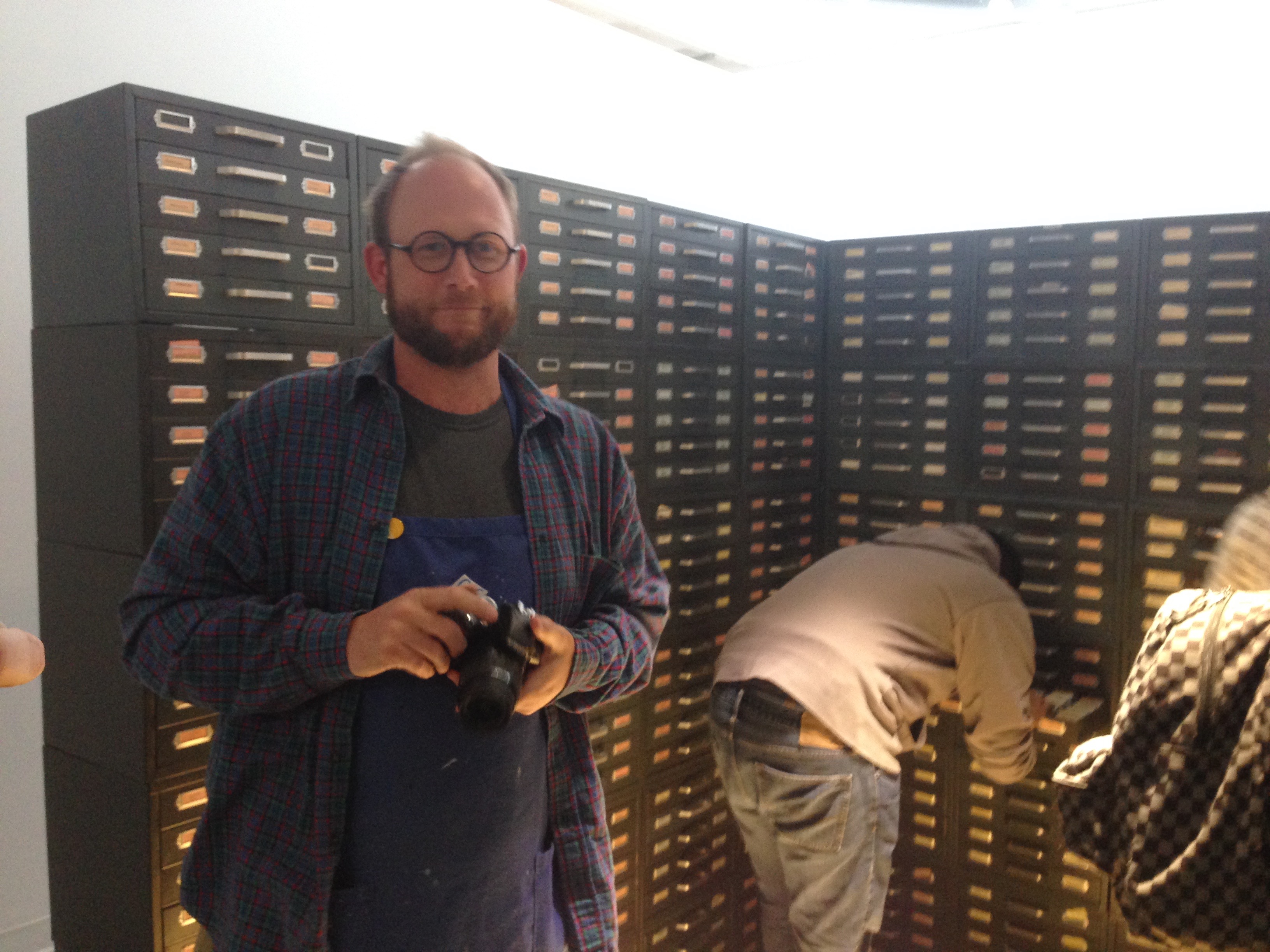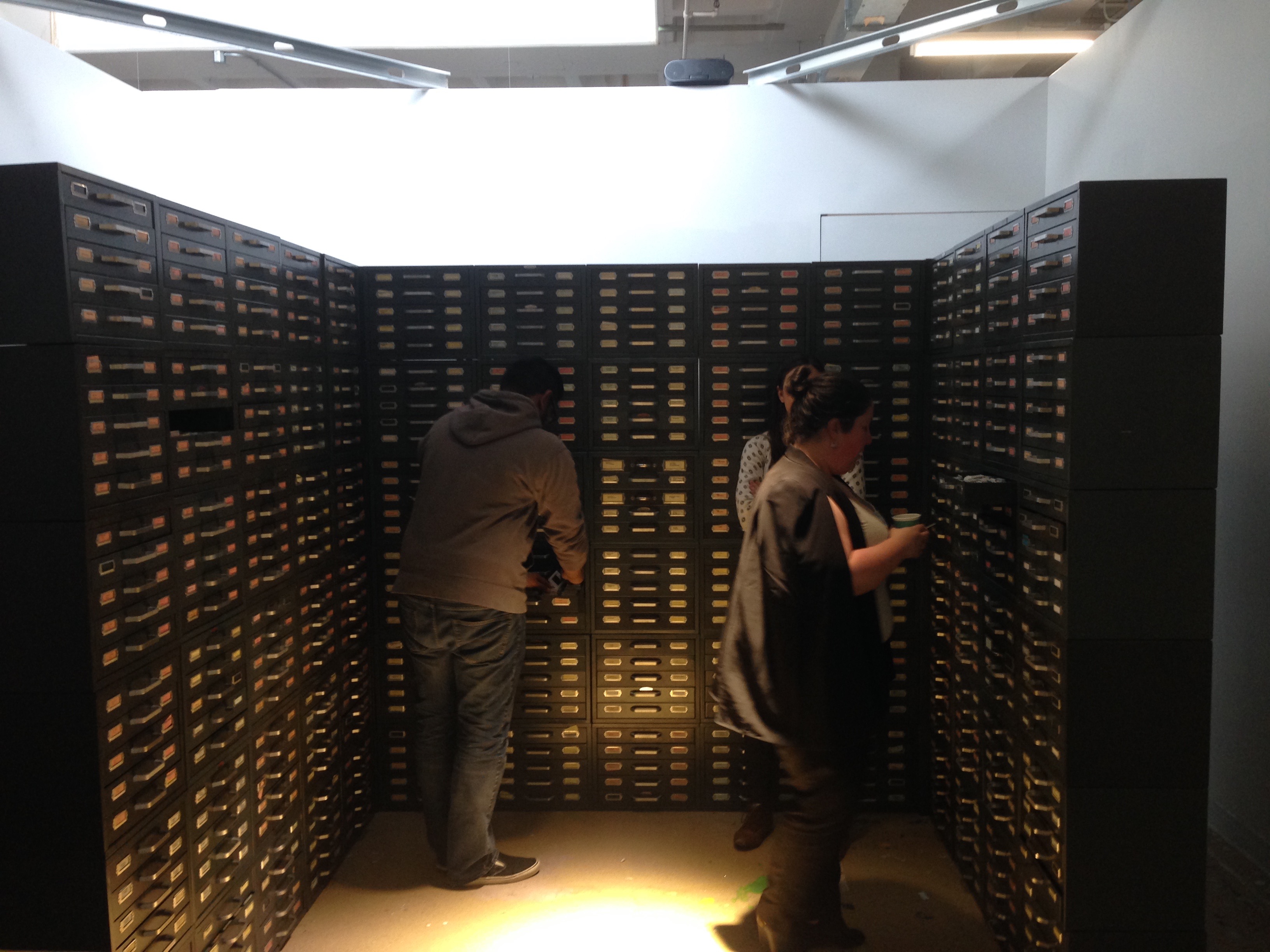 This exhibition displaced the slide collection currently held–and currently in the process of being decommissioned–by the Department of Art History & Archaeology at the University of Maryland to the Laboratory Gallery exhibition space in the Studio Department. The slide collection was formerly the shared property of both academic departments, before they split apart. The installation was an attempt to make the collection of images (and their containers) available to the Studio Department again, before the collection was completely decommissioned. The exhibition was curated by Cecilia Wichmann. A musical soundtrack by composer William Kenlon accompanied the exhibition.