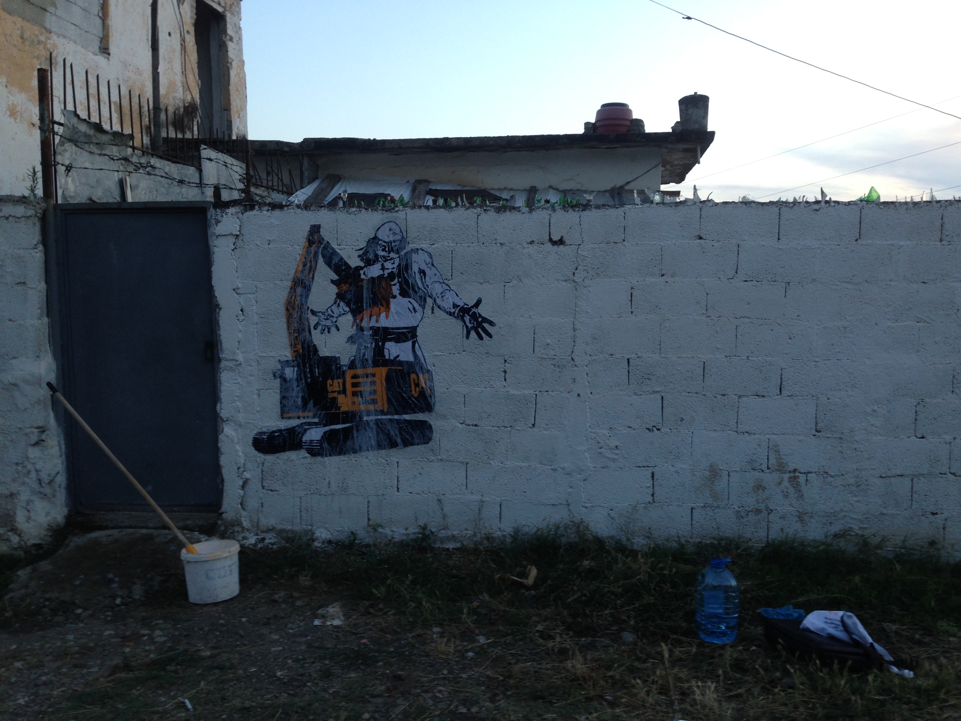 Epopeja e Eskavatorit [The Epic of the Excavator] was a work realized in collaboration with the street artist/activist collective Çeta, a group operating in Tirana, Albania. The design of the image, its installation, and the writing of the accompanying text (below) were carried out collaboratively. The work was installed on July 28, 2016, on the wall of a house that will almost certainly be destroyed in the ongoing extension of Tirana’s ‘Unaza e Madhe’ highway.