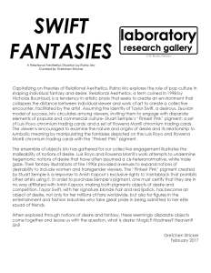 This project explored the relationship between fantasy and desire through the figure of Taylor Swift, staging a relational aesthetics situation that incorporated Stuart Semple’s Pinkest Pink pigment and trading cards featuring the art of Luis Royo and Rowena Morrill. The exhibition was curated by Gretchen Stricker, and organized by Laboratory Gallery director CW Brooks.